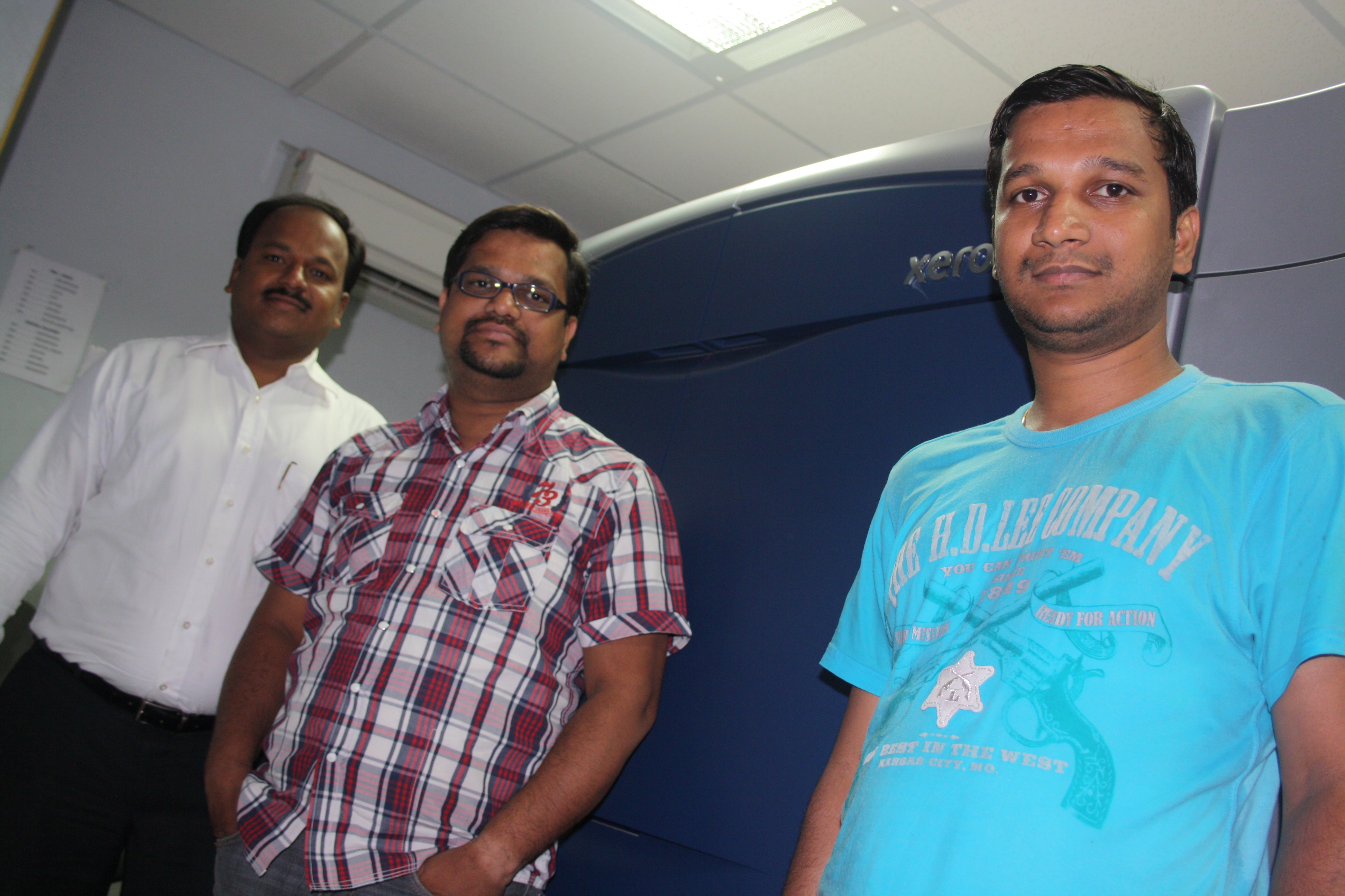 Caption: (l-r) Prakash Gaddam, Murali Nandyala and Shrikant Nandyala: "Xerox 1000 delivers jobs in time"