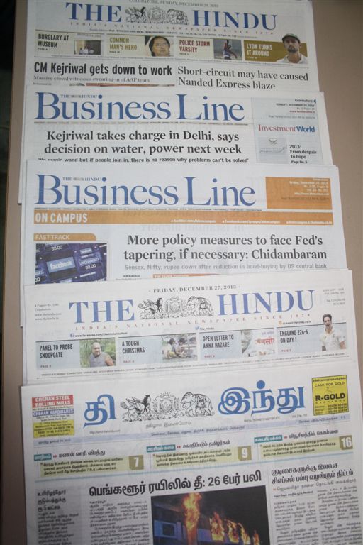 Various editions like BusinessLine; Tamil (Coimbatore City and Salem); and The Hindu (Coimbatore City and Salem). All printed between 10pm to 2.30am