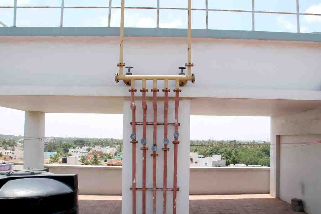 Note the ergonomic design of the water piping work. This means, minimum bends in the piping network and also control valves at every point. Therefore, repair work can be done with zero leaks