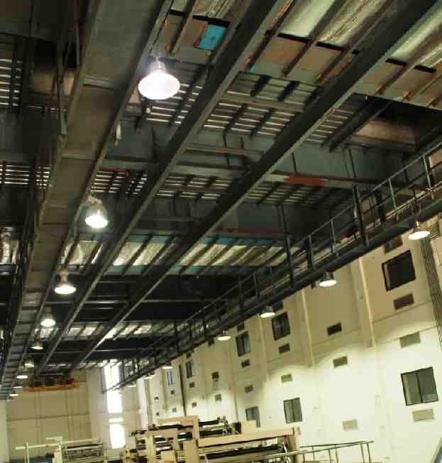 In the building design, the plant has long glass windows in the machine room, reel godown and corridors which ensure natural light inside the press hall. During day hours, the plant uses only 50% of light energy