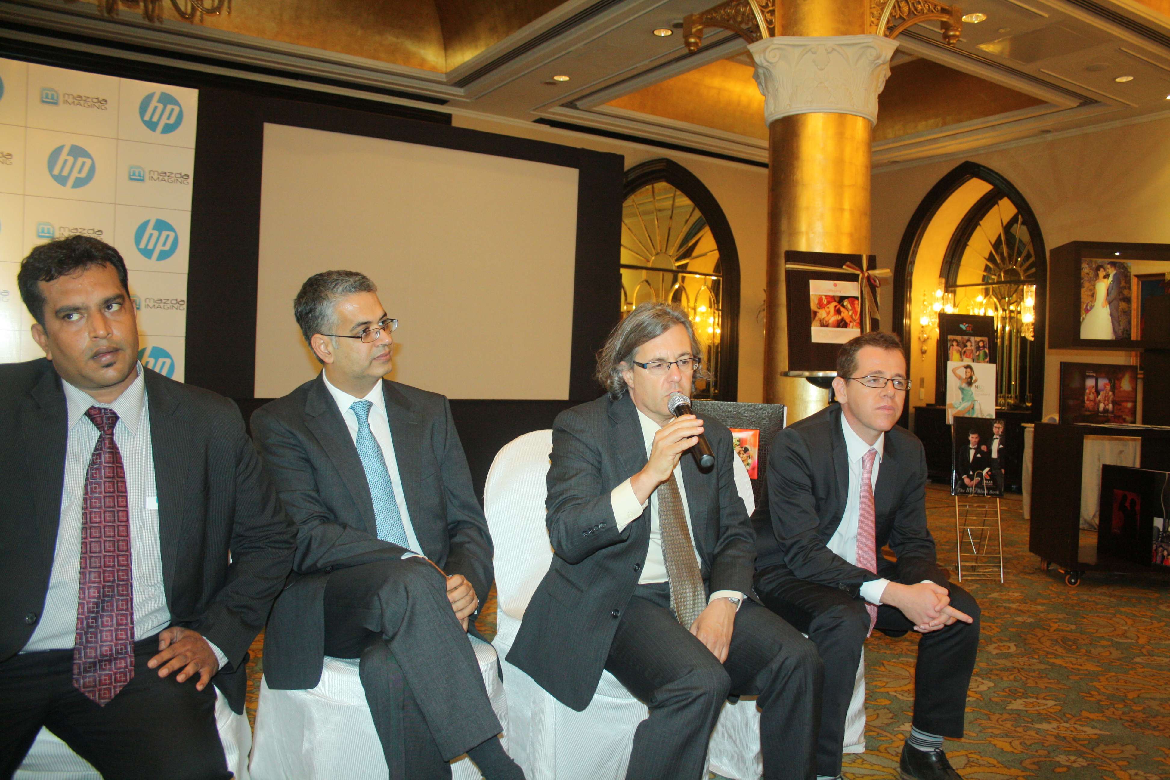 At a special launch event for the media hosted at Mumbai’s Taj Palace today, HP’s Alon Bar-Shany, Roy Eitan, A Appadurai and Mazda’s Phiroze Havaldar presented prints delivered by the HP Indigo 10000 installed at Mazda Imaging.