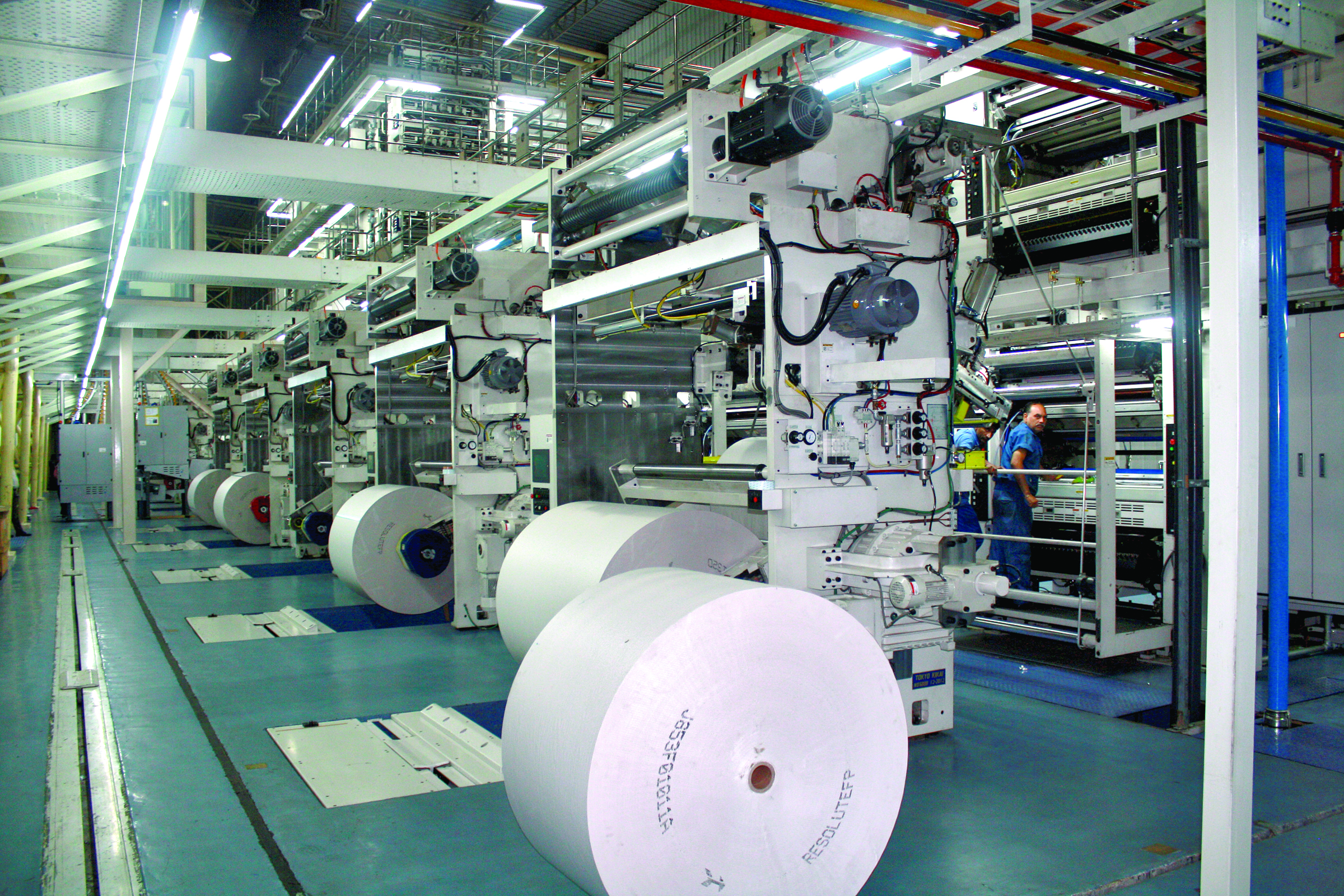 The 10-tower TKS 5100 UDI web offset press can run up to a maximum speed of 80,000 copies an hour with a cut-off of 546mm. This is a double-width single circumference (4x1) printing press.