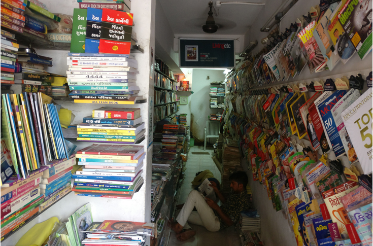 A collection of Gujarati magazines, books and newspapers, at a bookstore in Ahmedabad