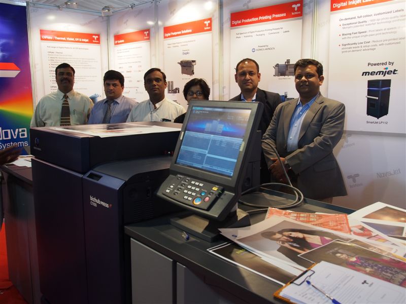 TechNova showcased the Konica Minolta C1100 bizhub press. According to Puranjit Sarangi, national sales manager, TechNova Imaging Systems, Indore has 30 digital printers printing three lakh A3 sheets/month