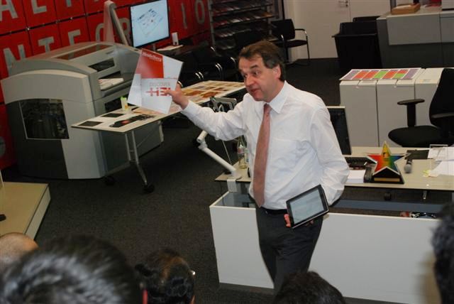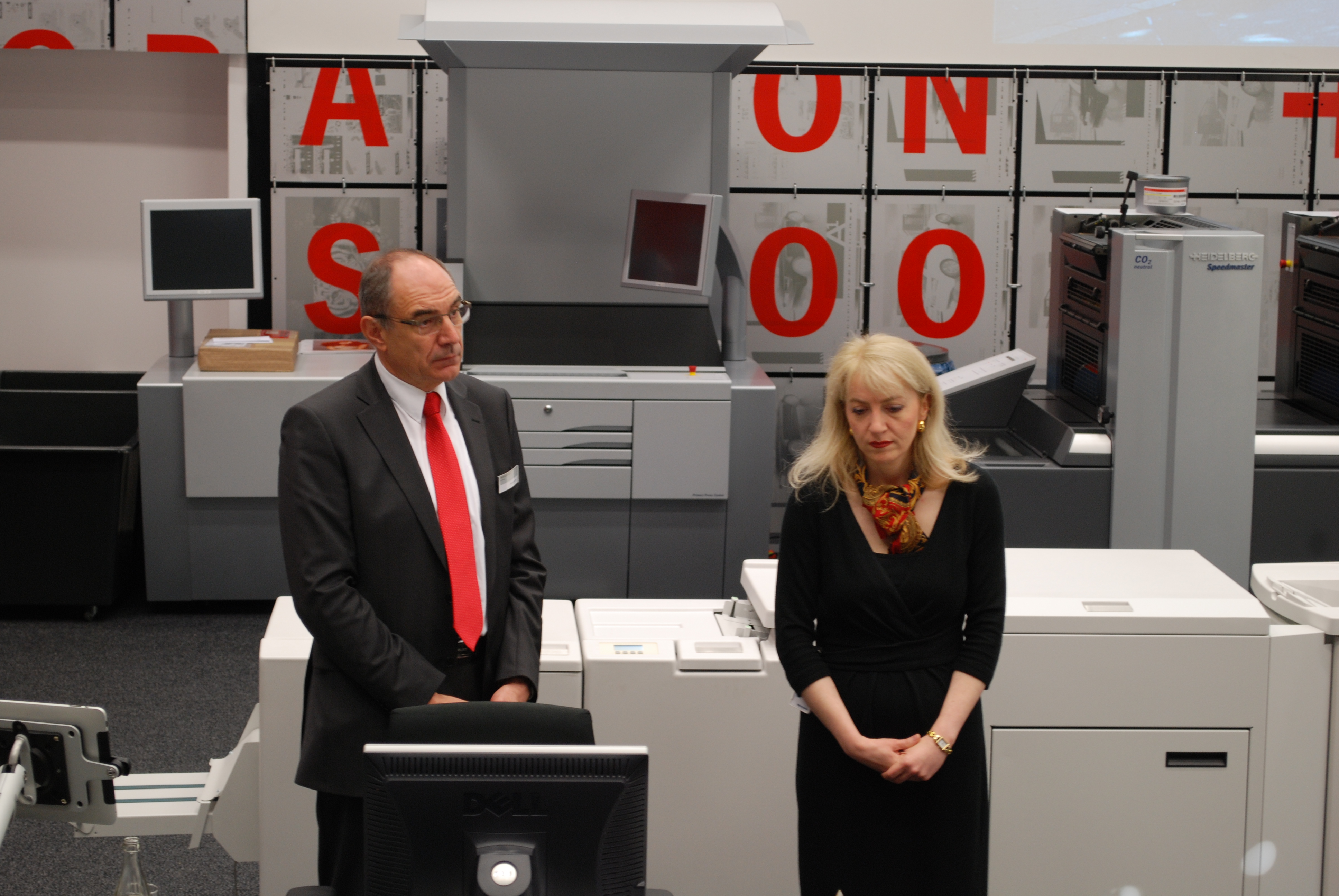Bernard explains the configuration of Speedmaster SX52 and its Anicolor version an the Demo Centre at Heidelberg HQ