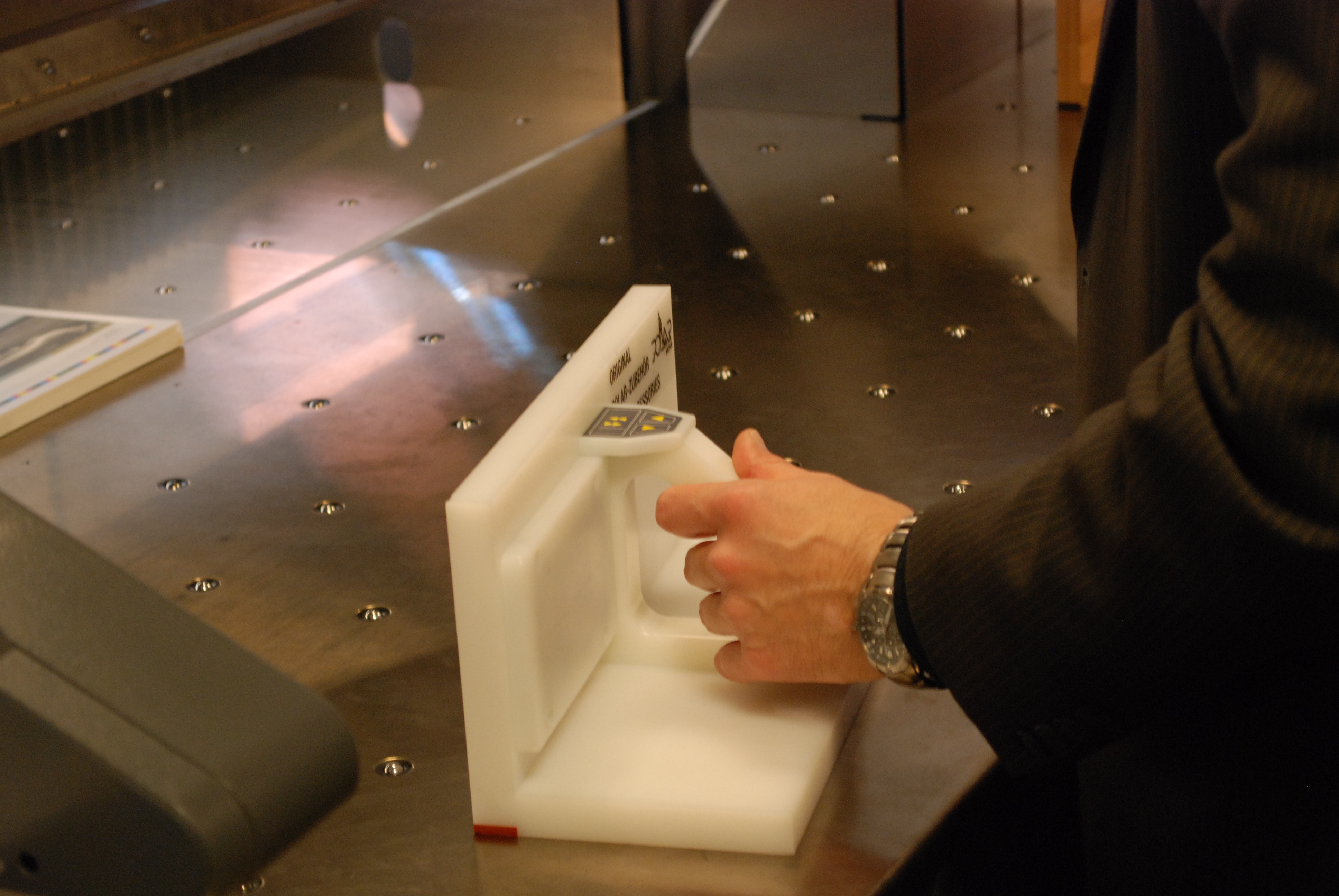 Steiner, sales director, Polar Mohr, demonstrates using the remote handheld device to operate the machine