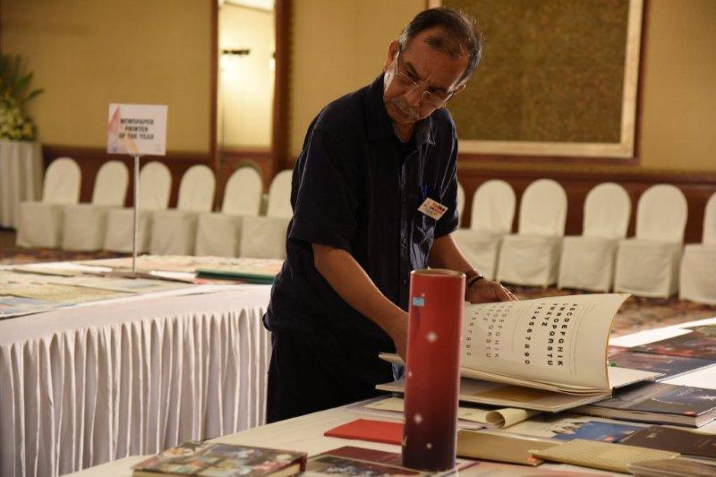 Fauzan Hussain taking a close look at one of the many samples in the Catalogue & Brochure Printer of the Year category