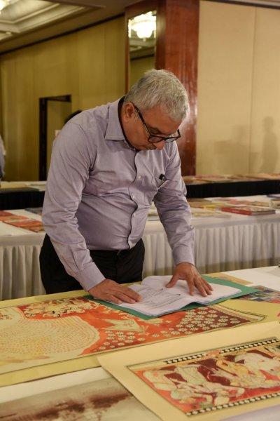 Jury members interact and discuss print samples during the judging process