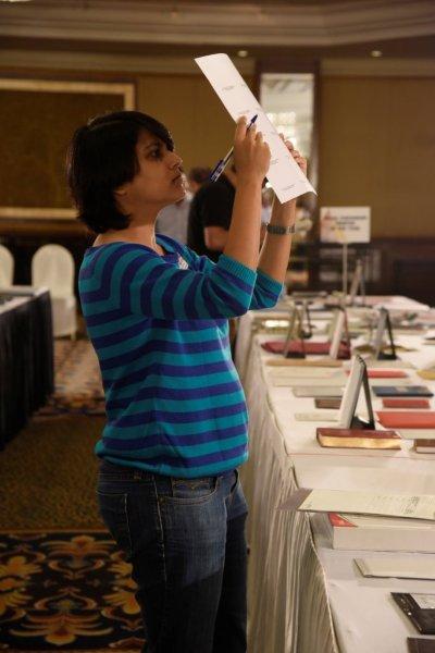Every print sample accompanies description of the print jobs. Kiran Prayagi, a stickler for perfection, checks the process used to produce the sample he was judging