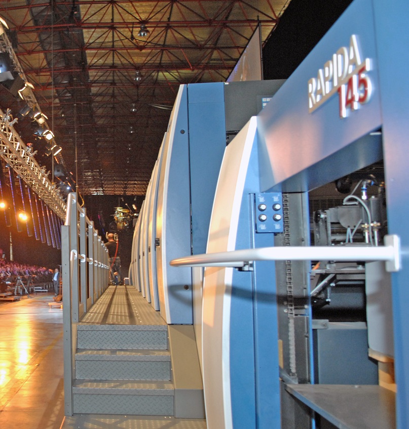 What makes the press innovative is, its inkjet inking unit which has two integrated Atlantic Zeiser Delta 105iUV systems and a UV LED dryer for personalised imprinting and coding. An innovative vacuum cylinder (AirTronic Drum) with countersunk grippers ensured that the sheets were positioned correctly under the inkjet heads. This option, which dispenses with the need for mechanical sheet guides and print-free corridors, is unique to the Rapida 105 and 106. By preventing the rear edge from lifting it allows the inkjet system to be installed at a distance of just 1mm (0.04in) from the sheet.