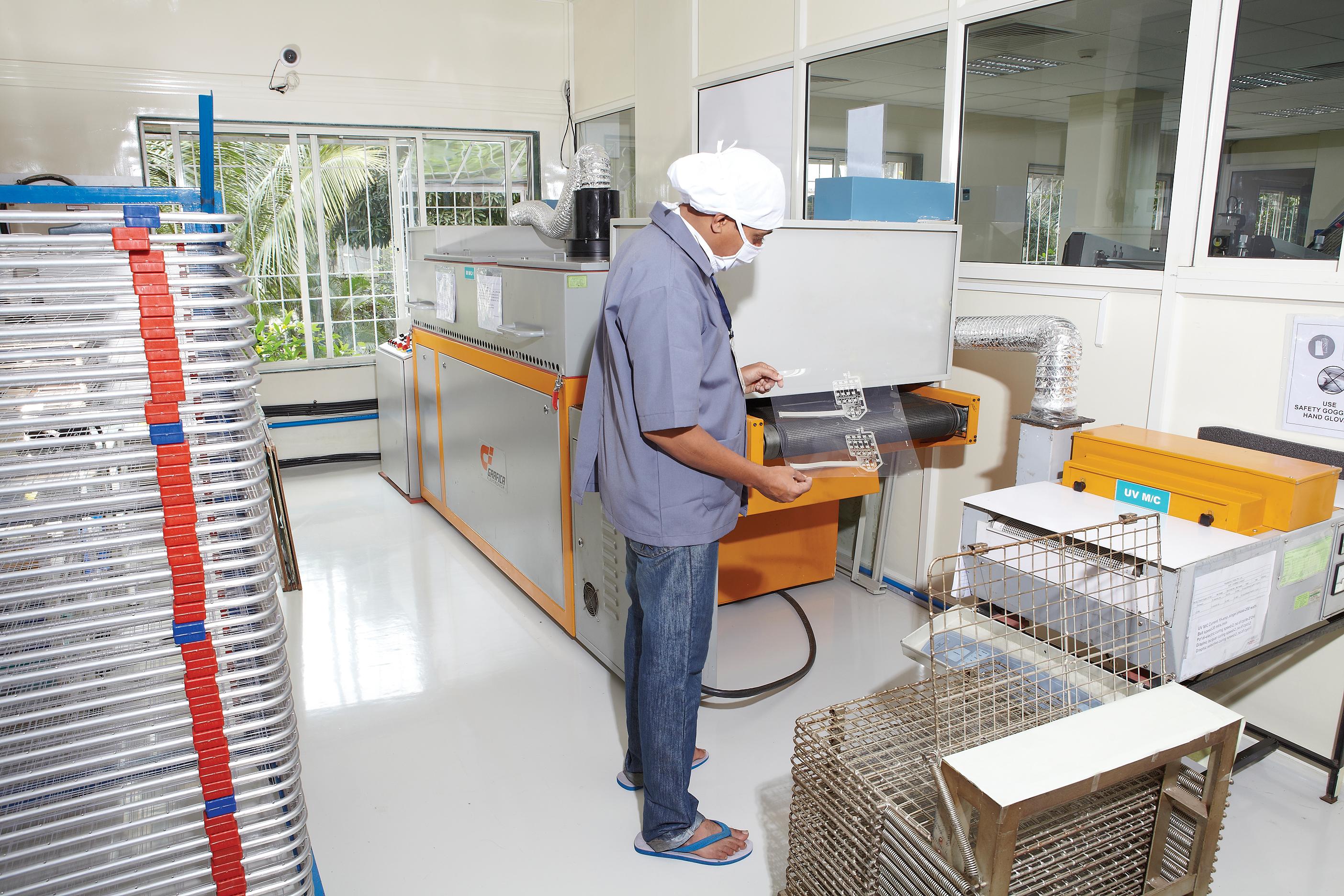 The conductive inks need to be incorporated into very small, confined spaces. This requires precision and hence an in-house screen making set-up with a dedicated dark room.
