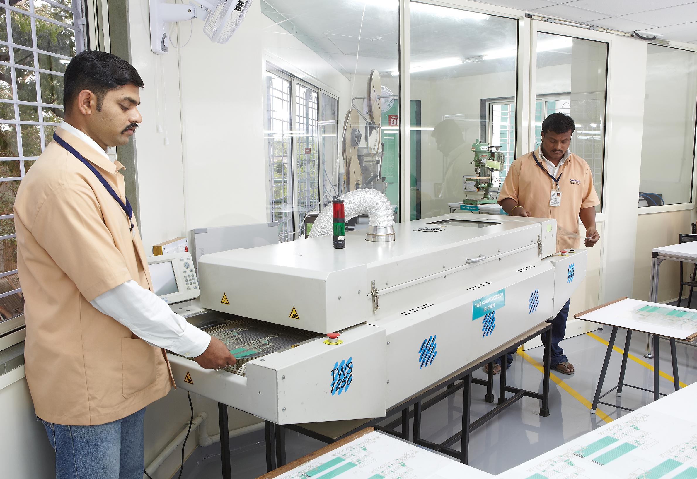 There are two assembly lines: One for printed circuit boards (PCB) and printed circuit films (PCF).