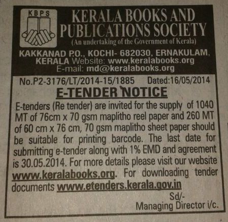 The tender documents are available on www.etenders.kerala.gov.in for download and additional details of the tender can be viewed at the association's website -www.keralabooks.org.