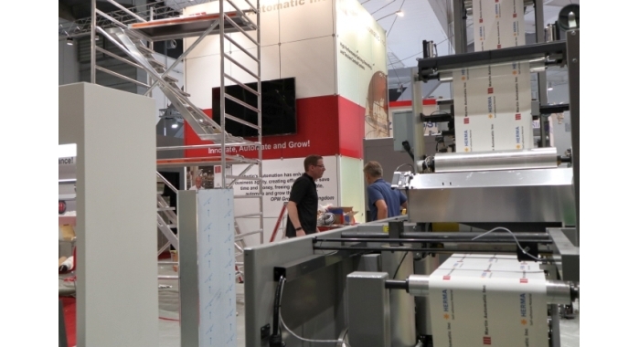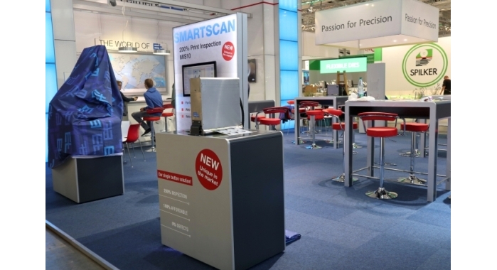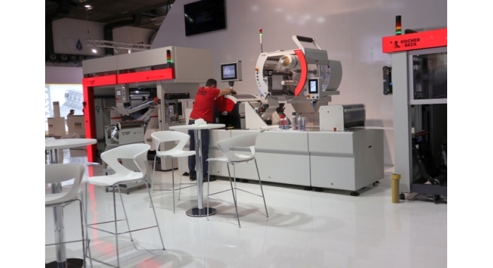 Smag’s booth has the new 530mm-wide Digital Galaxie and 350mm-wide E-Cut generation III digital converting systems. Also on display is the 350mm-wide Digital Galaxie generation III and high-speed roll-to-roll flatbed silkscreen on a 350mm-wide Galaxie SP
