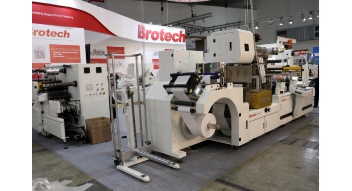 Brotech’s SDF Plus is a modular digital label converting system with a flatbed hot stamping module, on-the-fly flexo printing, die-cutting, and laser die cutting