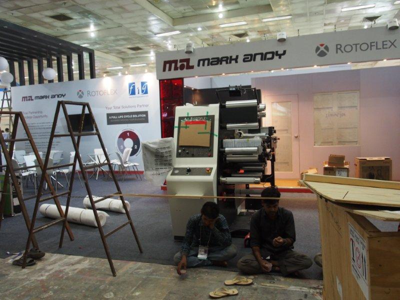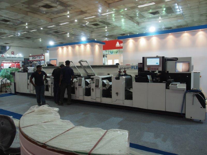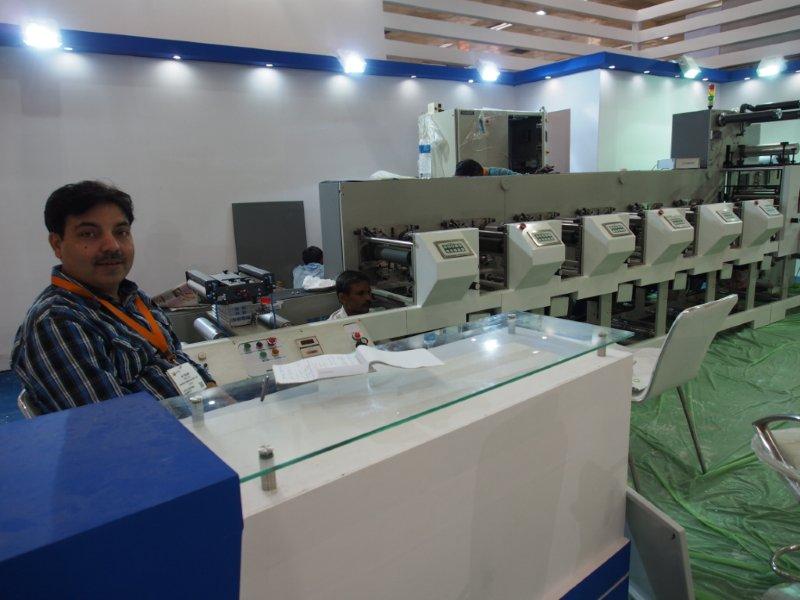Jatinder Julka of Alliance Printech at the stall. While Alliance's new series Novaflex flexo label press is being set-up in the background