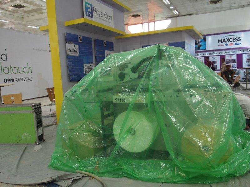 Many machines which will be exhibited at the show were kept under wraps. All set to fired up on Wednesday