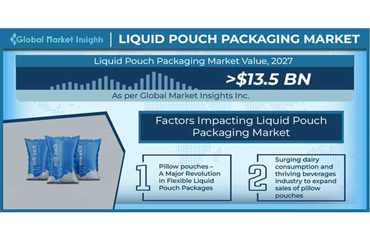 As per GMI projections, liquid pouch packaging market size from the pillow pouches segment may surpass USD 4.5-billion by 2027.