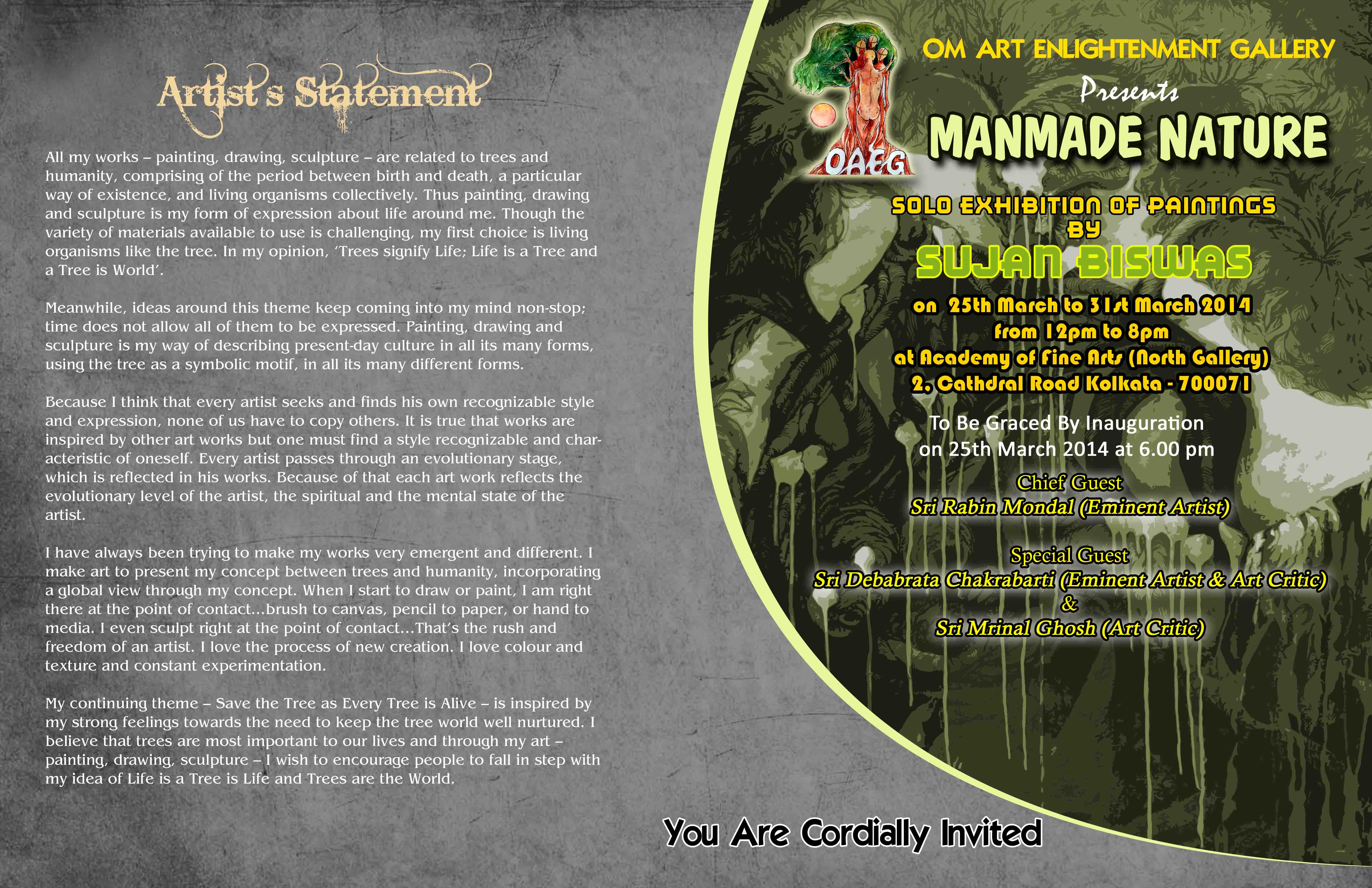 As a result Biswas expresses his views that trees have lives with full consciousness. The images can be attracted and spoken with the universe which is assumed to over here and feelings by the creatures, the trees were nothing in physical state but in spiritual state, it is hence embracing social imperatives personal revelation by holding solo exhibition, at last- the trees.......; the trees.......; the trees.......