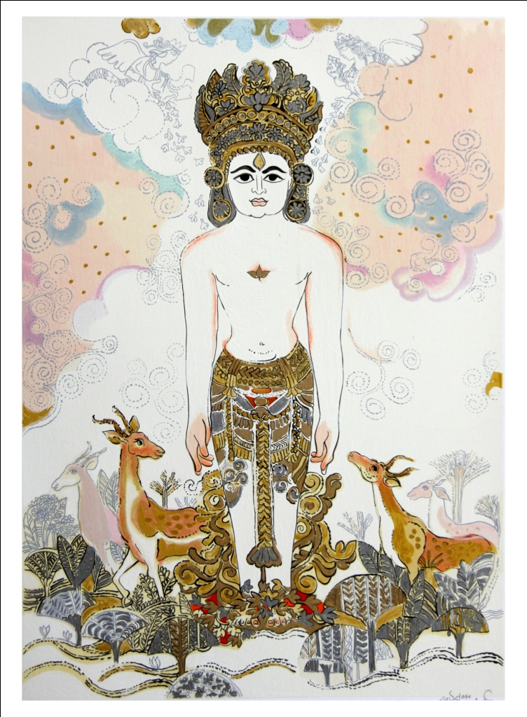 Ravindra Salve: Shantinath BhagwanSilk Screen Serigraph on Paper, 32x25inch, 2014