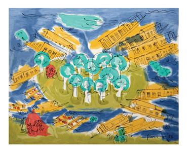 Ratan Parimoo: Boats In Srinagar I | Silk Screen Serigraph on Paper, 30x35-inch, 2012