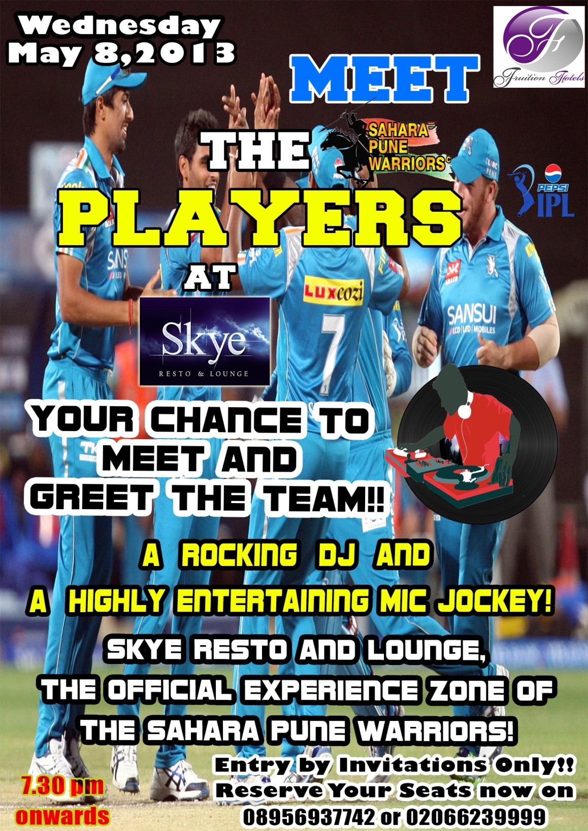 Skye Resto and Lounge, the official experience zone of the Sahara Pune Warriors is set to rock Pune with the city’s own IPL team!!
