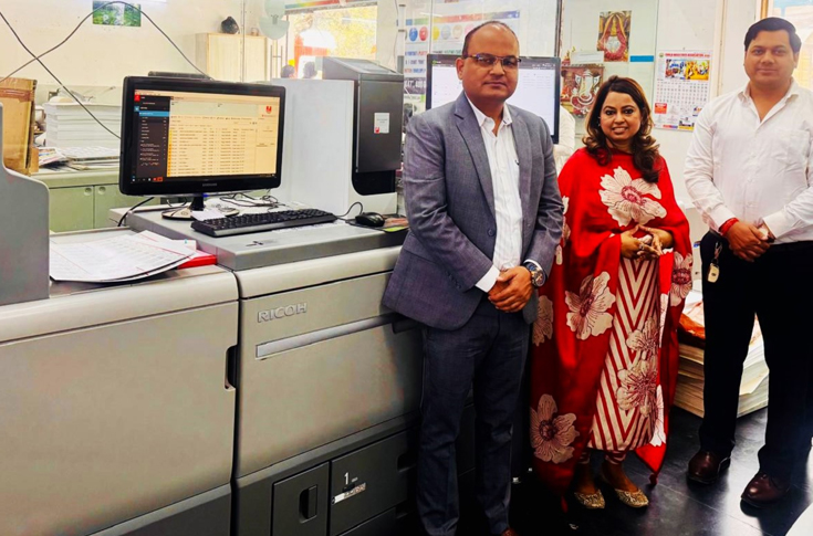 Established by Sri Prasad and Anuradha Dayal in 2007 at Nehru Place in New Delhi, India’s largest electronics hub, Megha Enterprise eventually expanded to Okhla Industrial Estate (Phase-I) a couple of years ago to set up its current main office. The newly bought Ricoh Pro C7500 digital colour production press is installed and running in a well-designated state-of-the-art digital printing unit alongside other digital production presses.