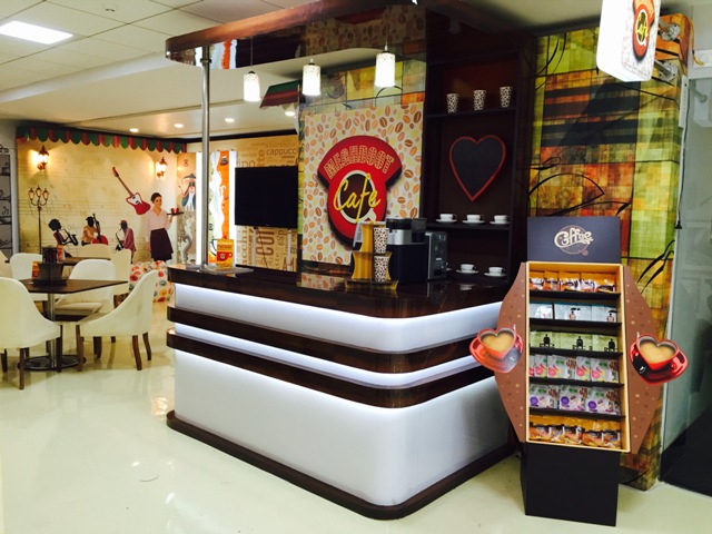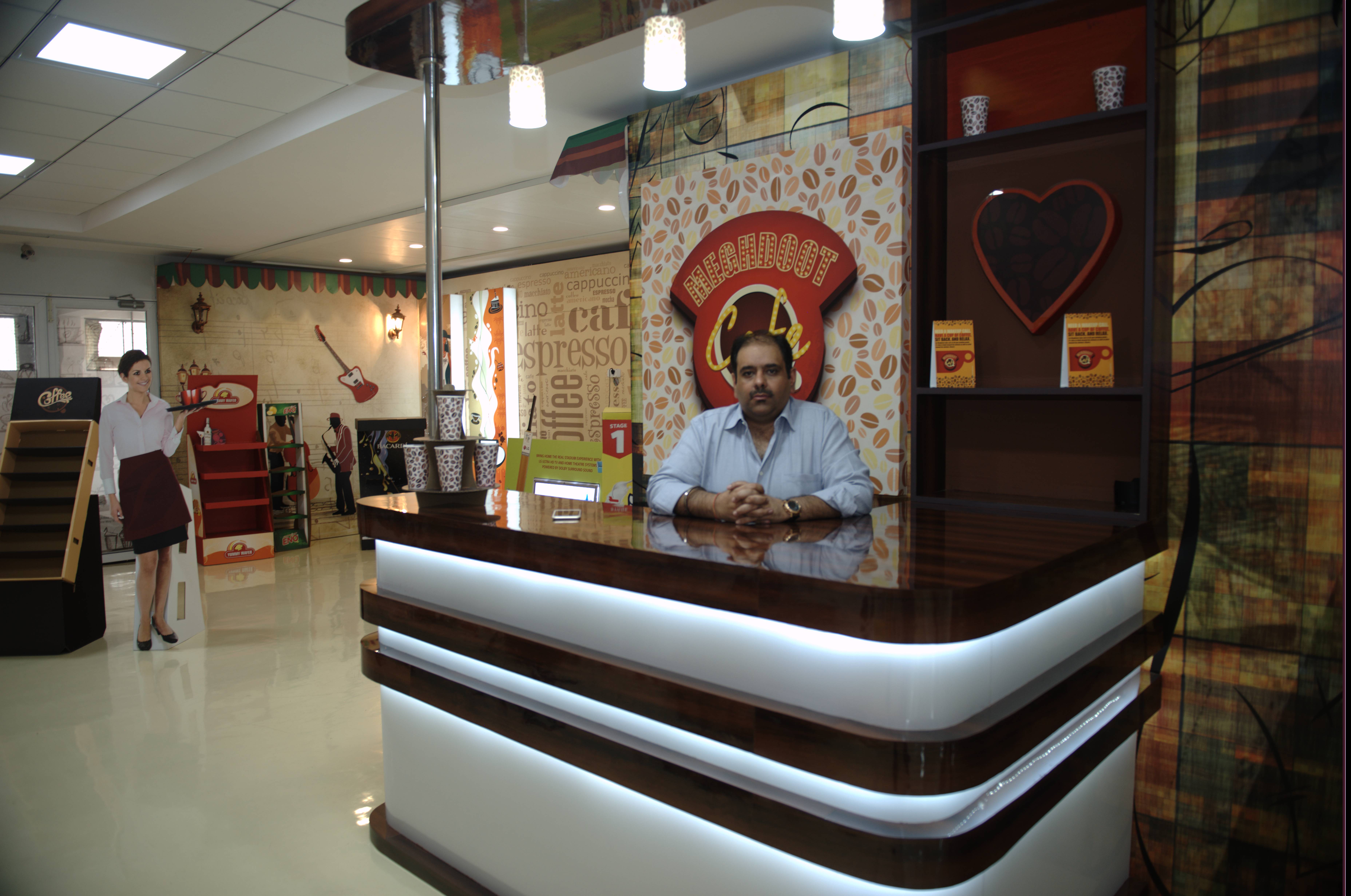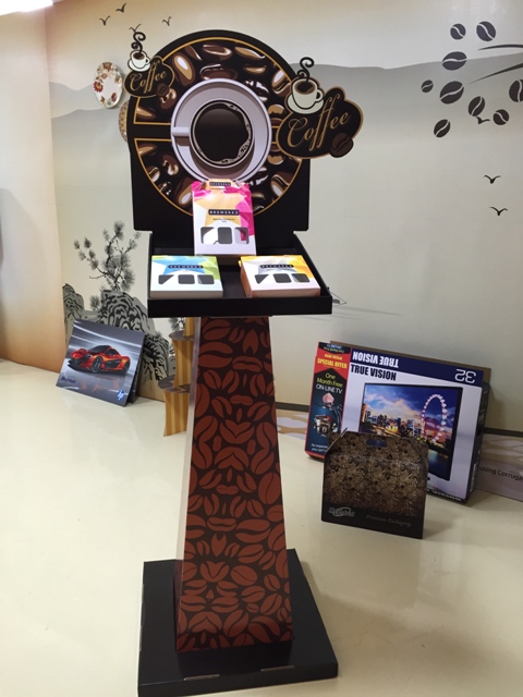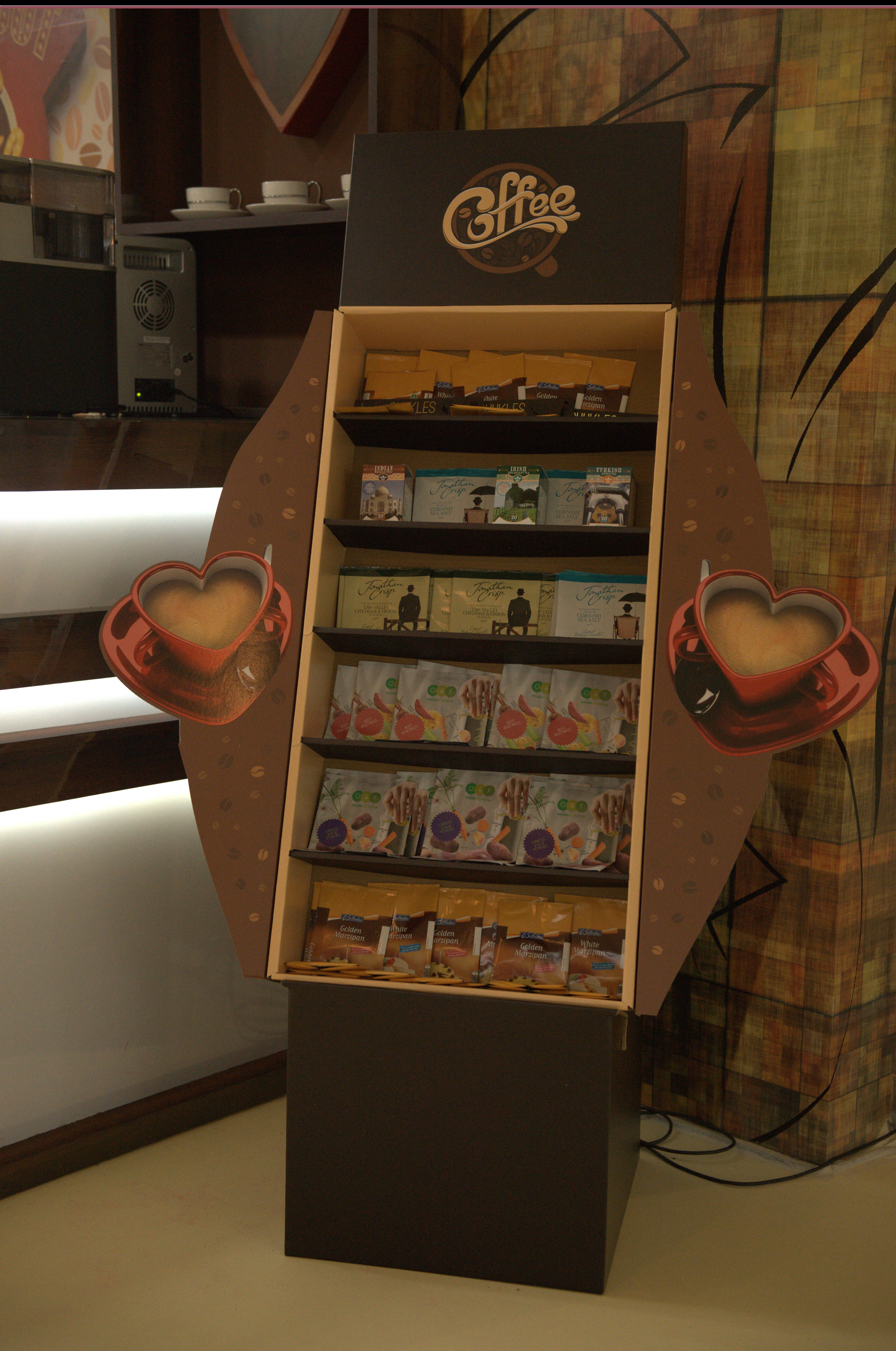 A POP stand by Meghdoot promoting coffee, it was displayed at Meghdoot Café as well