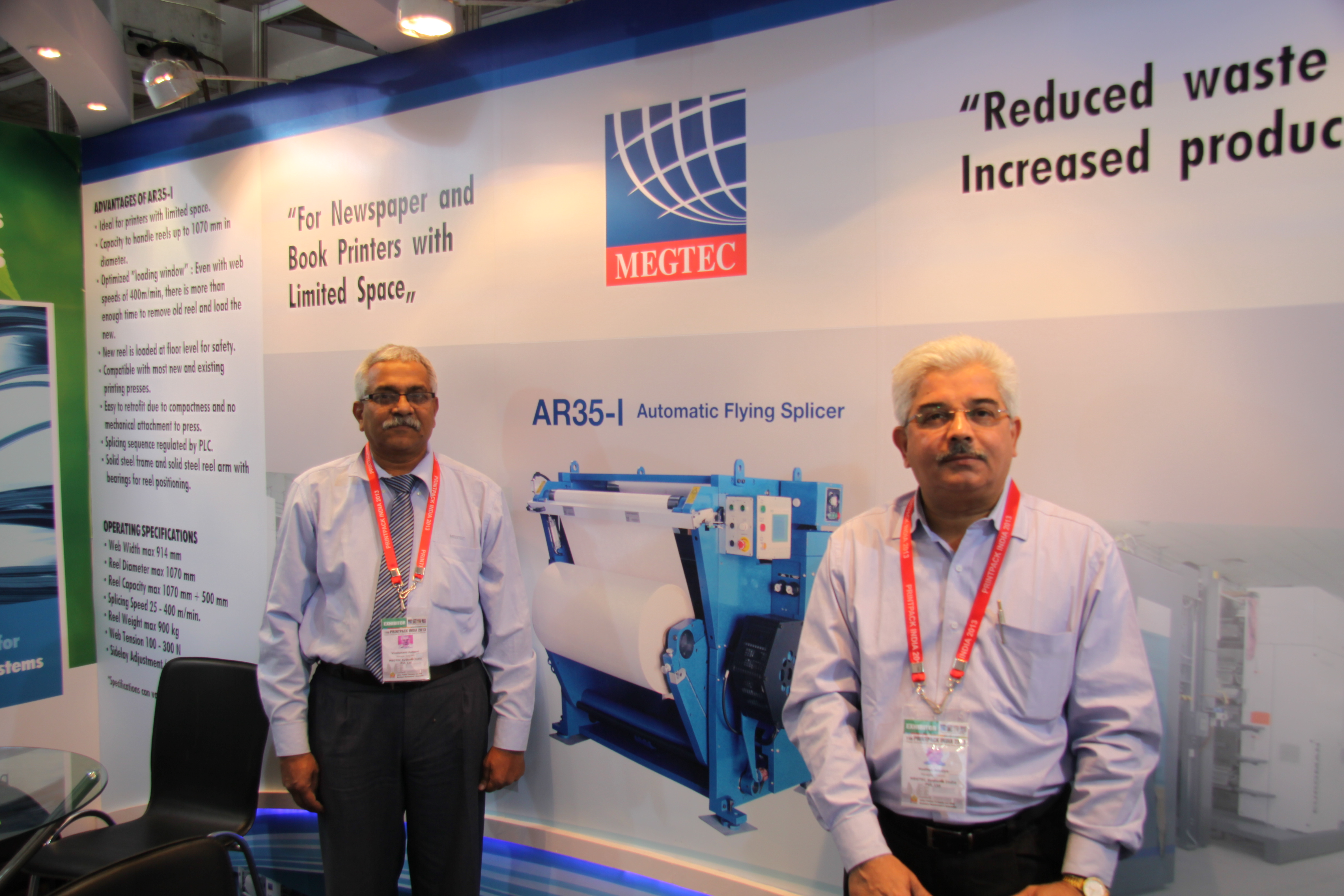 At the show, Megtec Systems India has received 10 orders for AR 35-I on the last day from a newspaper group in Tamil Nadu and 12 orders for WTB-410. Besides these orders, Megtec Systems India has "20 enquiries for its automatic splicing systems".