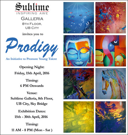 Sublime Galleria is excited to showcase art from two inspiring child artists. 'Prodigy' is an exhibition of artwork created by the astonishingly talented Virat Karan and Pranav. The exhibition will be on display from 15th to 30th April, 2016, at India's first Art Gallery in the Sky.