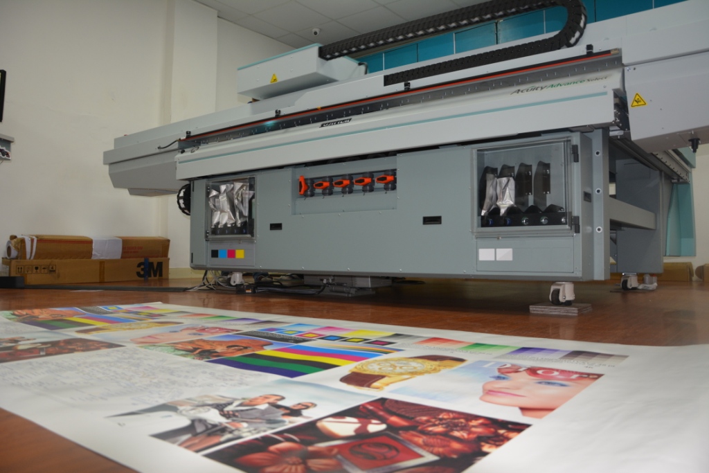 Standing tall: 4x6 ft sized POPs and display units are the usual marketing and branding formula today. The Acuity can hadle a maximum size of 2.5x1.25m for rigid media and has a maximum print width of 2.19m for roll media