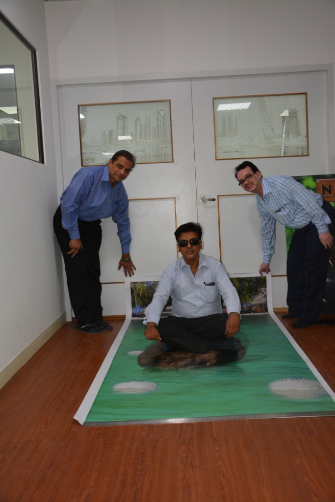 We the Production People decided to visit Neat Graphics in Thane. The reasons were more than one. Sandip Thanawala invested in a Fujifilm Acuity Advance Select, won national and international awards, produced works of print which make the usual POP, POS and lenticular print look obsolete.
