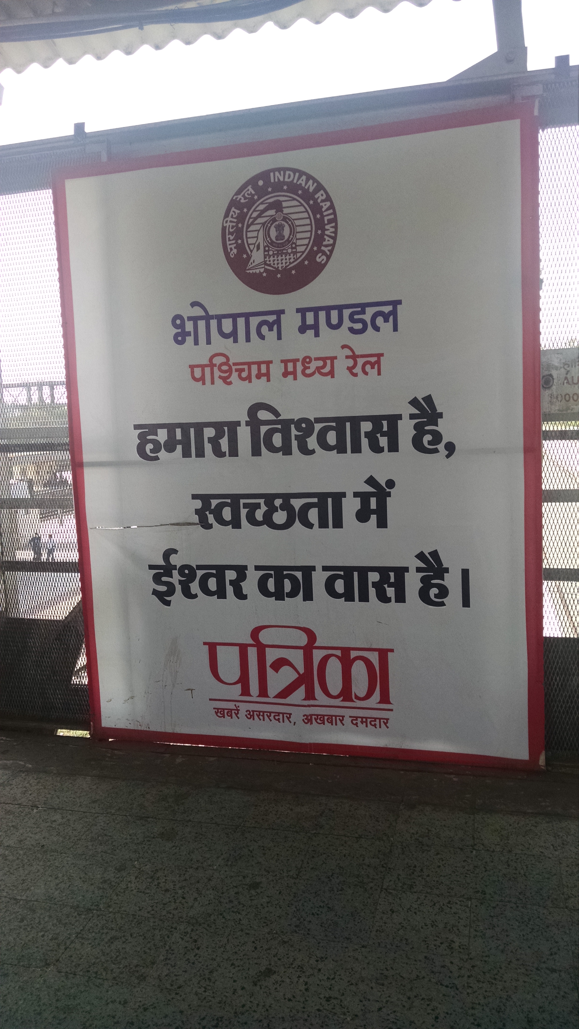 A banner of Patrika, a Hindi newspaper located at the bridge of railway station.