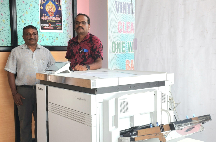 Monikandan and Kumar of Phoenix Arts said that word of mouth and witnessing another customer using the Canon imagePress prompted Phoenix Arts to decide on the V700.
