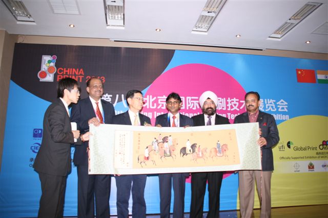 The India Day was held during China Print 2013. Delegates from Indian and Chinese print associations presenting a memento to the chief guest Dr B Balabhaskar, Indian vice ambassador to China in Beijing