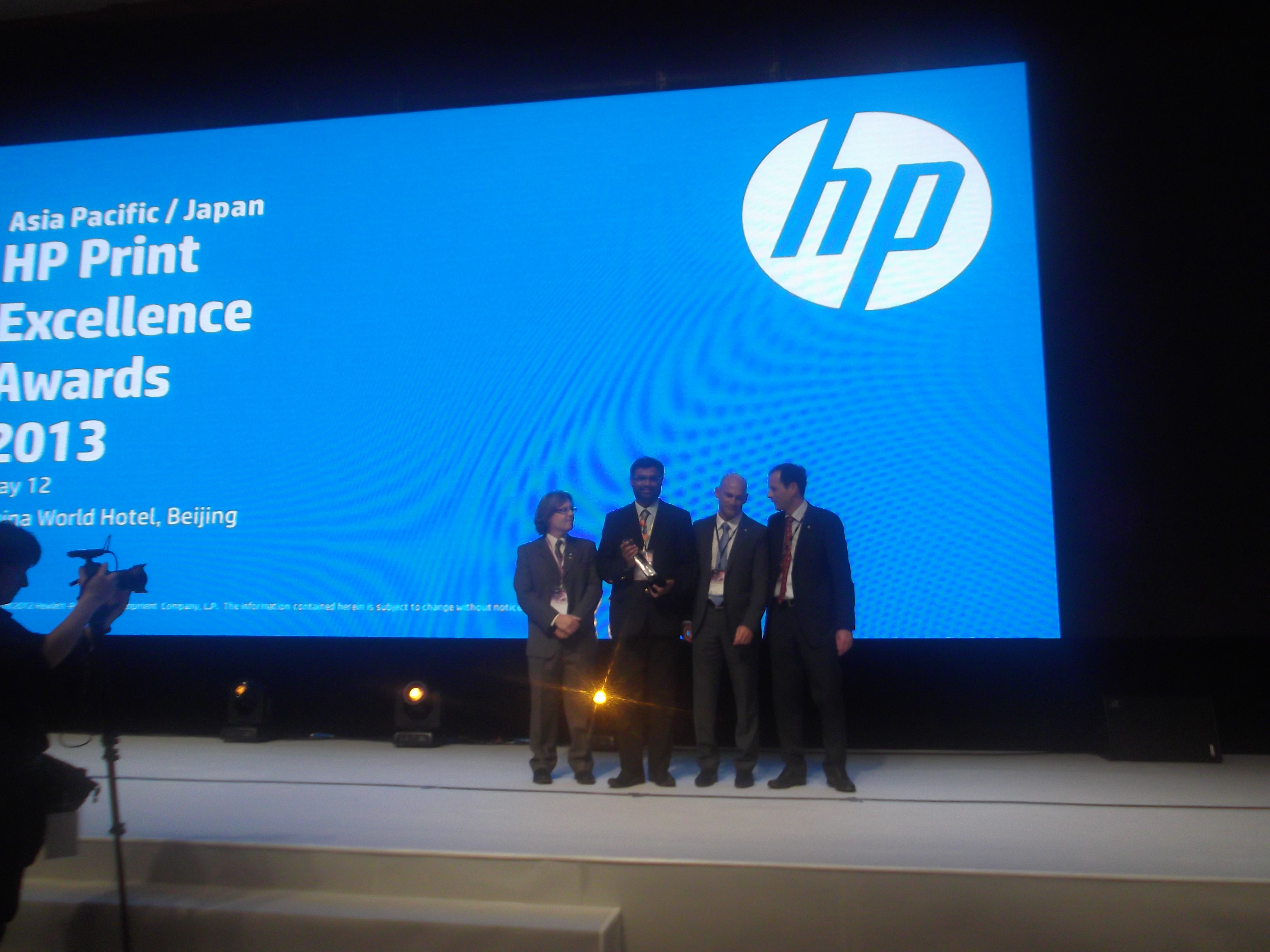 Saifee Makkasarwala of Silverpoint Press receiving the HP Print Excellence award for commercial printing. Among 300 entries from printing companies across 14 countries from Asia Pacific and Japan, 13 Indian entries bagged awards