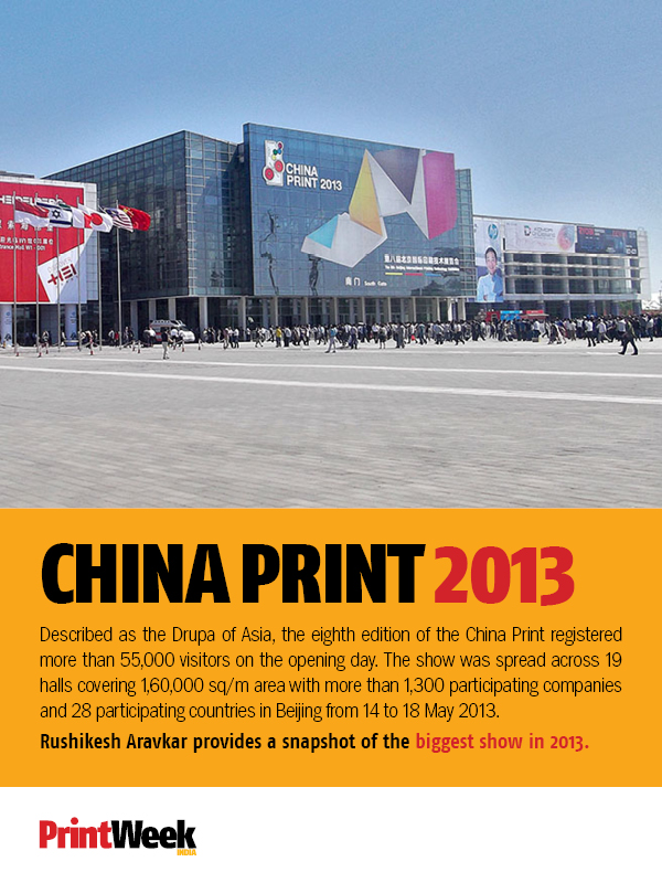Themed as ‘being green, effective, digitalised and intelligent, China Print 2013 was spread across 19 halls covering 1,60,000 sq/m area. The five-day show crossed a footfall of 1,80,000 visitors