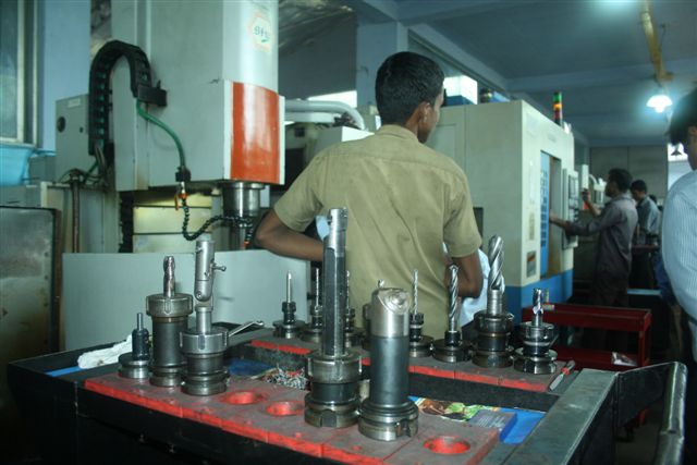 The different tool heads for CNC machines that produce critical machine parts, some of these parts are used by ISRO for metallurgical development of rockets