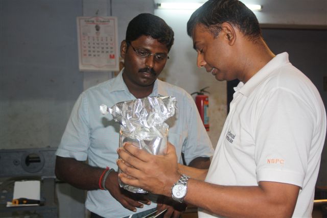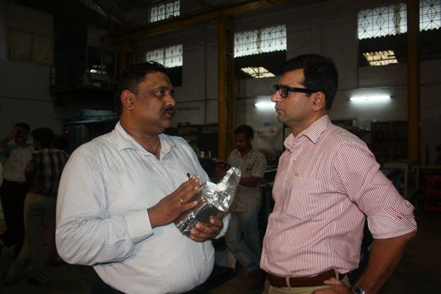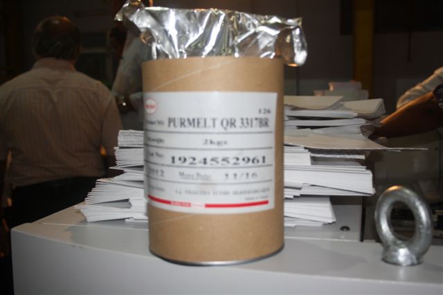 Welbound's Kishore Kumar (r) demystifies PUR for Ganesh Sivam of 1st Print