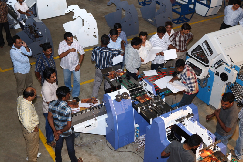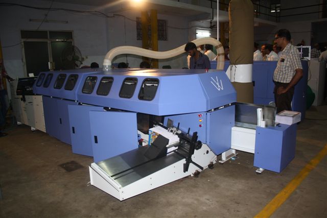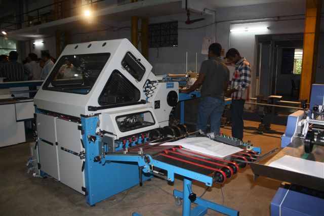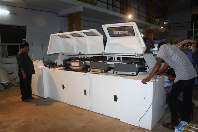 The yet to be launched seven clamp perfect binding machine was being redied for demonstration