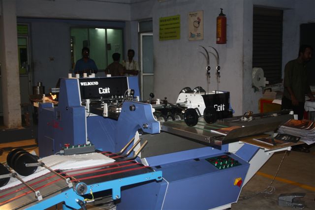 The printing firm houses a range of Welbound products which produce textbooks for Kerala, Karnataka and Tamil Nadu textbook society. In picture is Diploma 4Z3X combination folding machine with four buckles and three knives