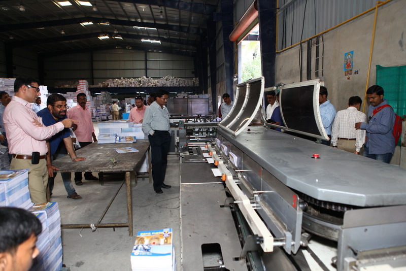 After the factory visit, the participants visited a book printing firm located 100 metres from the factory. Here, they observe Welbound's WB 3600 12 clamp perfect binder in action
