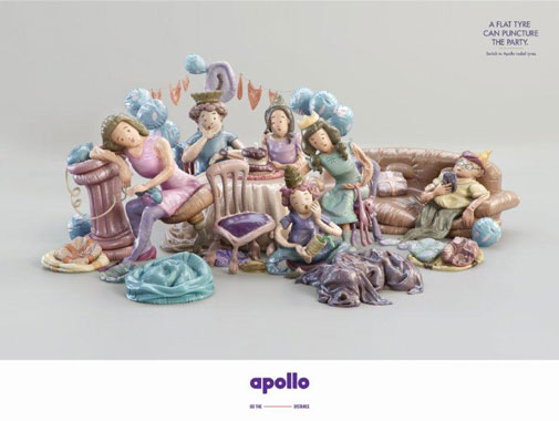 Apollo Tyres by J. Walter Thompson | This print campaign showcased punctured occasions, with visuals of deflating elements in the frame. Much like what would happen if one doesn’t use the brand’s radial tyres.