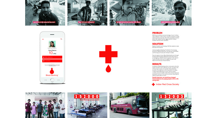 The Indian Red Cross Society - Blood Banking by J. Walter Thompson | Blood banks rely on donations. And those do¬nations were never enough to meet demand. The Indian Red Cross Society’s agency decid¬ed to change the game. They asked people to ‘save’ blood instead, with ‘Savings Accounts’ for blood. A Blood Banking App also allows account holders to track all aspects of their accounts. They could transfer deposits to their loved ones, withdraw when needed, and so on. In the first month, 152,000 accounts were opened. If a million account holders make their three deposits a year, India will have wiped out its blood deficit. That’s the target.