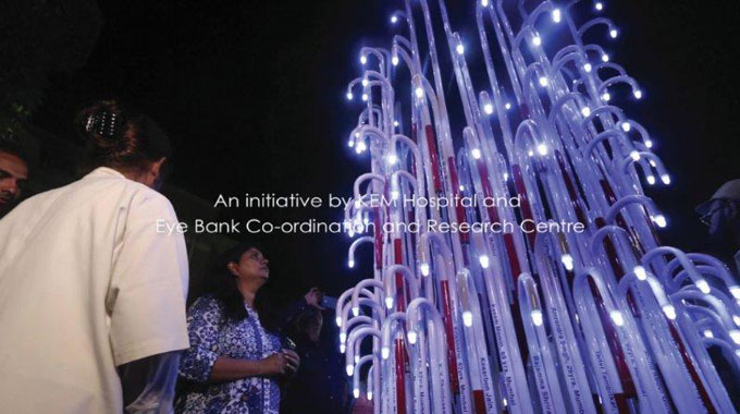 Fountain of Sight OOH campaign by J. Walter Thompson | This installation was made using walking sticks of people who have secured eye donation, because there are still many waiting in darkness.