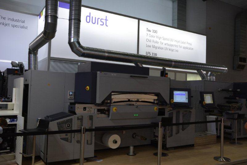 Durst unleashed the Tau 330 UV inkjet label press with in-line digital laser finishing system. Besides this, there was the very latest inkjet technology, the new Tau low migration UV inks from Sunjet