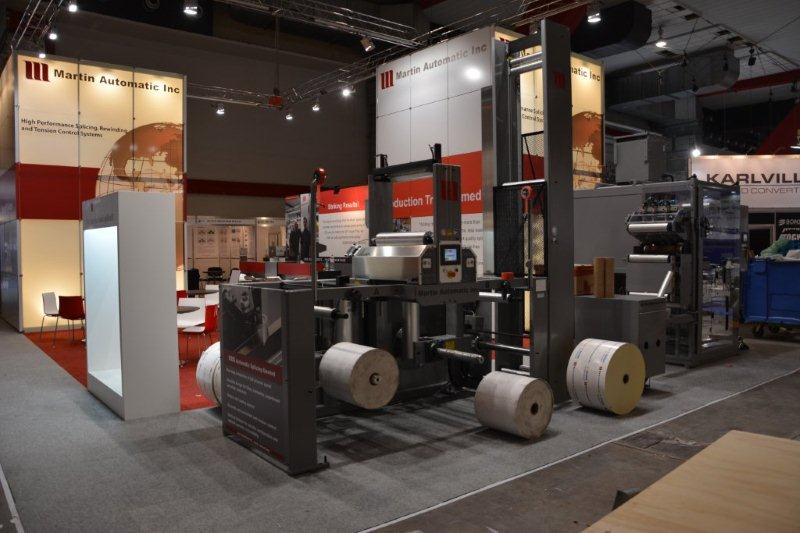 (l-r) Craig Thomson and Hope Hu of Martin Automatic, the North American manufacturer of automatic splicer, rewinder, and tension control systems, who displayed its modified MBS splicing and LRD rewinding machines, which now include a new touchscreen controls