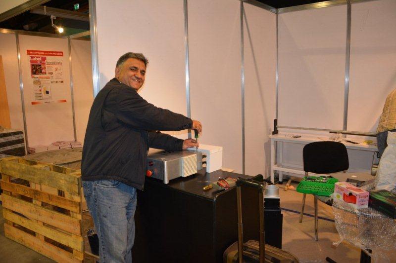 All smiles: UV Graphics' Abhay Datta, setting up the stall one day prior to the opening