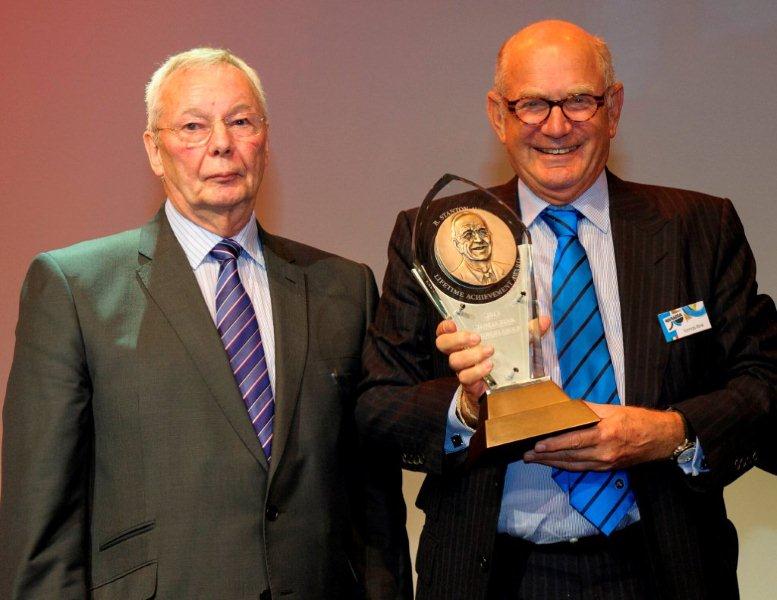 Ritrama’s Tomas Rink with Michael Fairley collecting the program’s highest bestowed accolade, the 2013 R Stanton Avery Lifetime Achievement Award sponsored by Avery Dennison