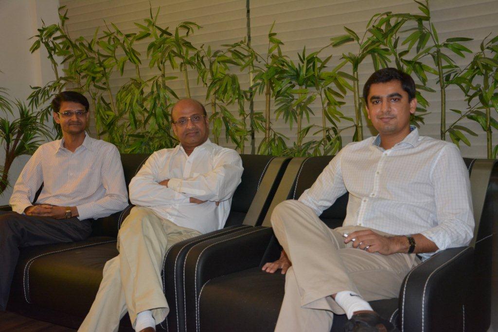 At the helm of affairs at Line O Matic is Uday Patel (in the centre), who believes that being efficient means being enterprising and proactive, and being competent means being skilful and well-qualified. His vision is to make Line O Matic, a leader in the paper converting industry in the global network. Seen in the picture are Swapnil Patel (right) and Mukesh Sonani of Line O Matic